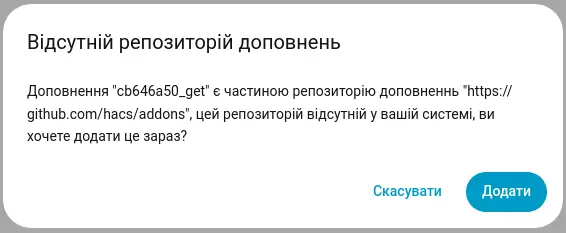 В діалоговому вікні «Відсутній репозиторій додатків» натисніть «Додати»