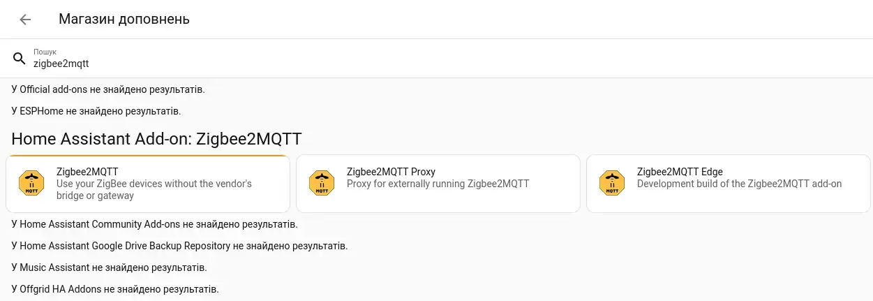 Налаштування - Магазин доповнень - вводимо "Zigbee2MQTT" в пошуку